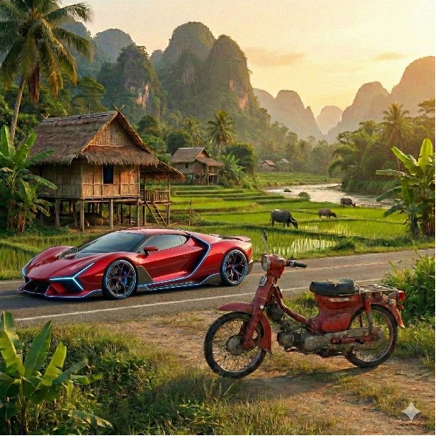 And then, there's the super-rich who live in domed palaces driving a rarest Italian or German made cars that cost average Laotian's entire life's income. There are so many fancy cars that one Lao girl proudly told me that Laos has the most-fancy cars in Asia per capita.